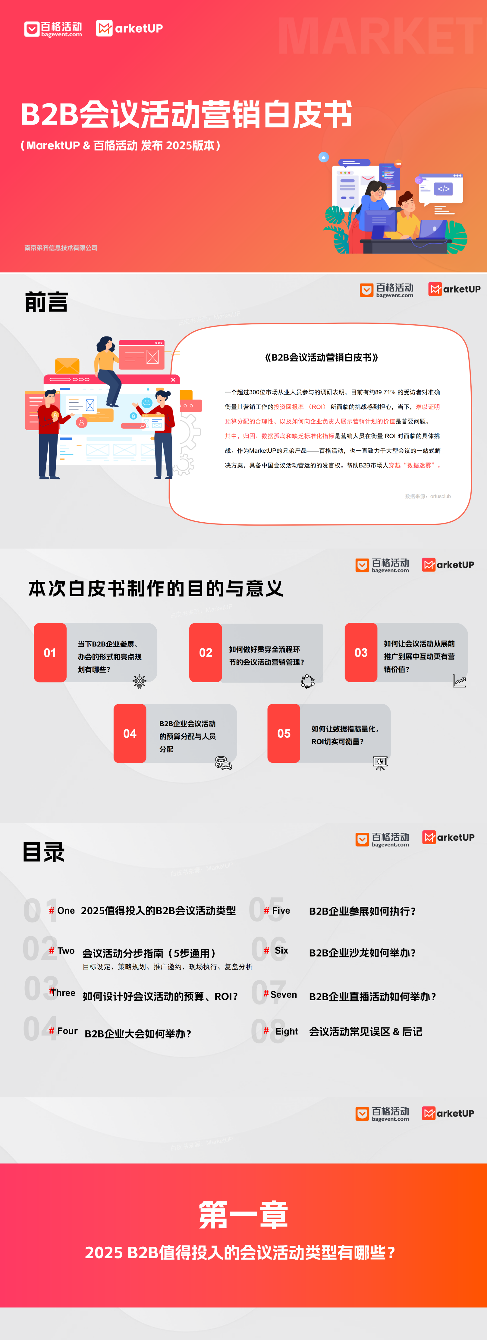 2025年临近下半年,MarketUP联合百格活动,共同重磅发布了这本90页+的《B2B会议活动营销白皮书》,这也是百格继学术会议白皮书后又一力作!主旨就是帮助广大B2B企业在下半年后,对会议活动营销的深入化发展思路,从展前-展中-展后,以及峰会、展会、沙龙、直播四类会议说清楚各类办会的流程和营销策略。